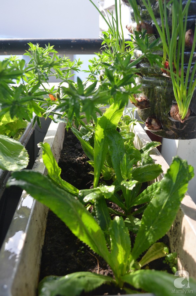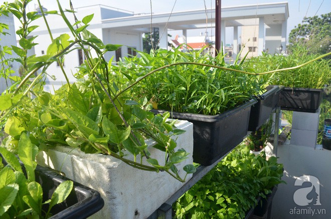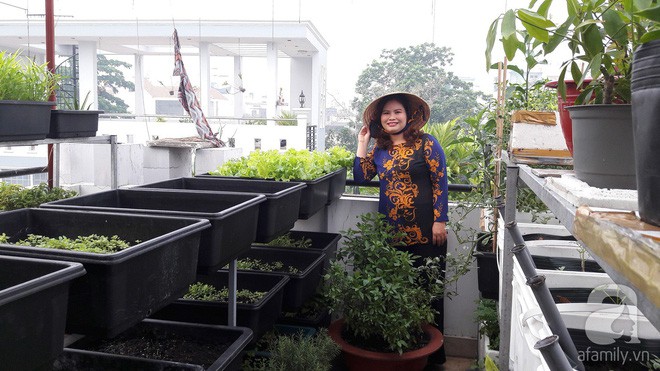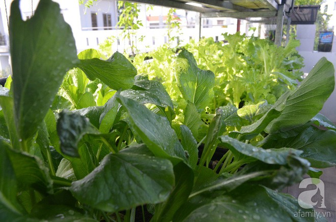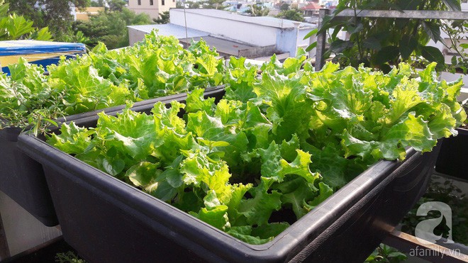 Và cuối cùng, bằng sự đam mê với nghiệp làm vườn, chị Thương đã tạo nên cho mình khu vườn với đủ loại rau xanh quanh năm, biến sân thượng của mình trở thành một vườn rau xanh mướt quanh năm.