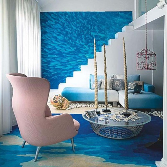Sự đồng điệu trong cách lựa chọn màu sắc giấy dán tường với thảm trải sàn và đồ nội thất mang lại vẻ đẹp lôi cuốn cho căn phòng.