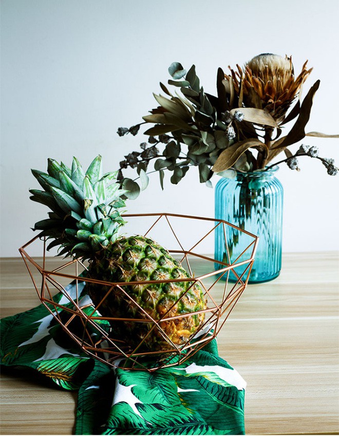 1. Giỏ kim loại với họa tiết kim cương cho góc bàn ăn thêm đẹp mắt và sang trọng.