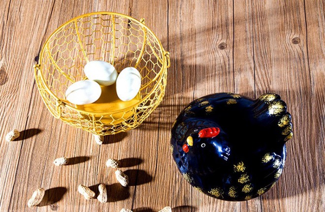 5. Chiếc giỏ kim loại có nắp đậy hình gà còn xinh xắn, bắt mắt vừa đựng hoa quả, trứng hay các vật dụng khác trong nhà bếp vừa giúp không gian thêm sinh động.