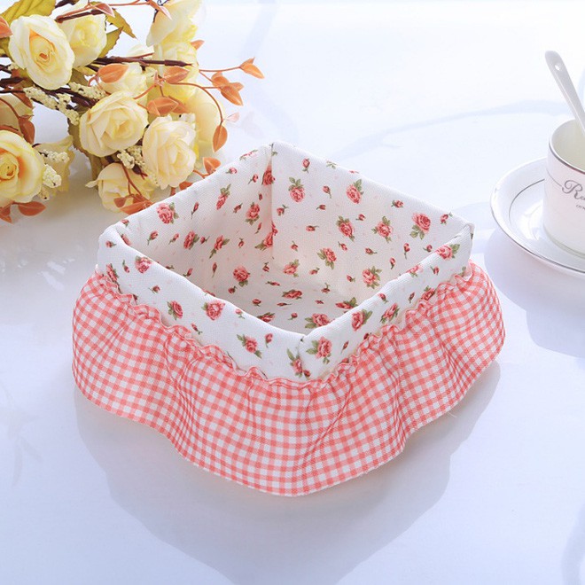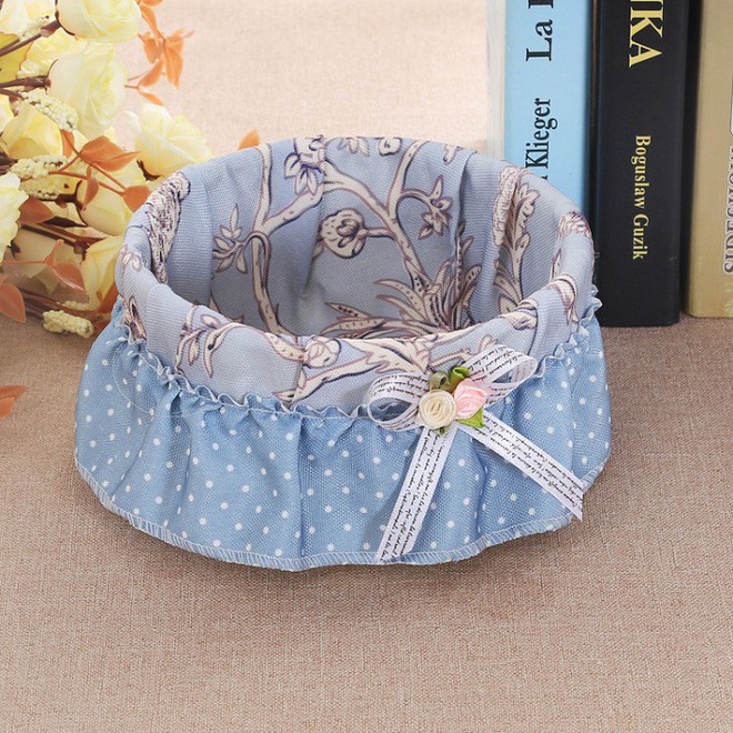 6. Với những ai yêu vẻ đẹp dịu dàng, nữ tính và mềm mại có thể sử dụng những chiếc giỏ được bọc vải với diềm diêm dúa, đáng yêu này.