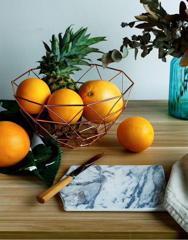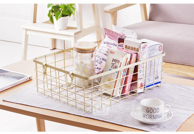 3. Vẫn là những chiếc giỏ hình kim loại nhưng lại có kiểu dáng vô cùng đơn giản, giúp những góc chức năng như phòng khách, bàn ăn ở phòng bếp hay góc chuẩn bị đồ ăn ở nơi nấu nướng thêm gọn gàng.