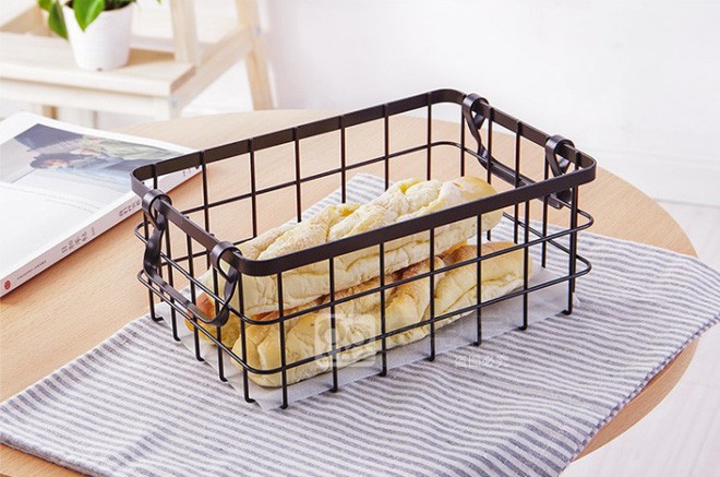 Góc bếp xinh xắn, góc bàn ăn thêm gọn gàng khi có sự hiện diện của chiếc giỏ đựng đồ hình chữ nhật bằng kim loại này.